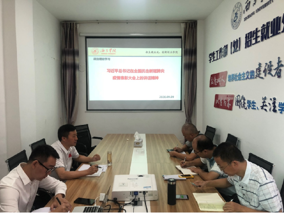 2020年9月9日上午10:30,招生就業處、創新創業學院在學工部一樓會議室組織召開了2020年9月政治理論學習,招生就業處、創新創業學院全體教職工參加會議。會議由張波主持。