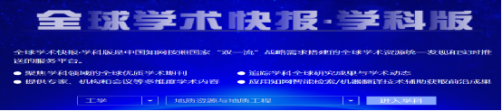 《全球學科快報·學科版》是中國知網在世界知識大數據的基礎上,依托智能檢索平台,按照世界一流學科建設需求搭建的全球學術資源統一發現和實時推送的服務平台。該平台可實時推送學科内頂級學術期刊、知名機構、頂尖學者、核心會議的全球最新研究成果,并結合機器學術翻譯技術即時呈現出最新英文文獻的中文翻譯,幫助用戶及時、準确、全面、便捷獲取各學科最新科研動态。它旨在服務世界一流高校和世界一流學科建設,主要滿足的是世界一流高校、一流學科及時、準确、全面獲取學科重要信息的需求。