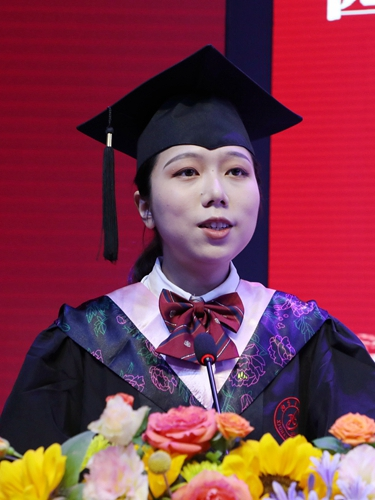 Professor Yang Hong from School of Environment and Resources, delivered her remarks as the teacher representative, extending her heartfelt congratulations to all the graduates on the successful completion of their studies. In her remarks, she gave three pieces of advice to all graduates: firstly, learn to adapt to the society; secondly, never give up the pursuit of learning; thirdly, never give up dreams.
