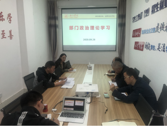 2020年9月28日上午11:00,招生就業處、創新創業學院在學工部一樓會議室召開了部門政治理論學習工作會,招生就業處、創新創業學院全體教職工參加會議,會議由張波主持。