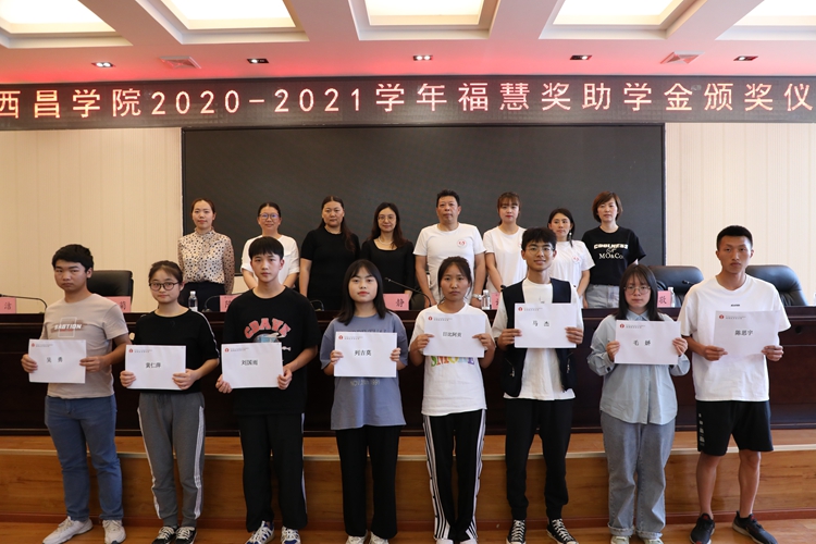 2021年5月19日下午,金年会2020-2021學年福慧獎助學金頒獎儀式在圖書館學術報告廳舉行。涼山州教育基金會代表謝國宏、王月、李敬,我校學生工作部副部長馮靜、學工部心理健康教育中心副主任邱菊、獲獎學生參加會議。會議由學工部資助辦公室主任陳曉莉主持。